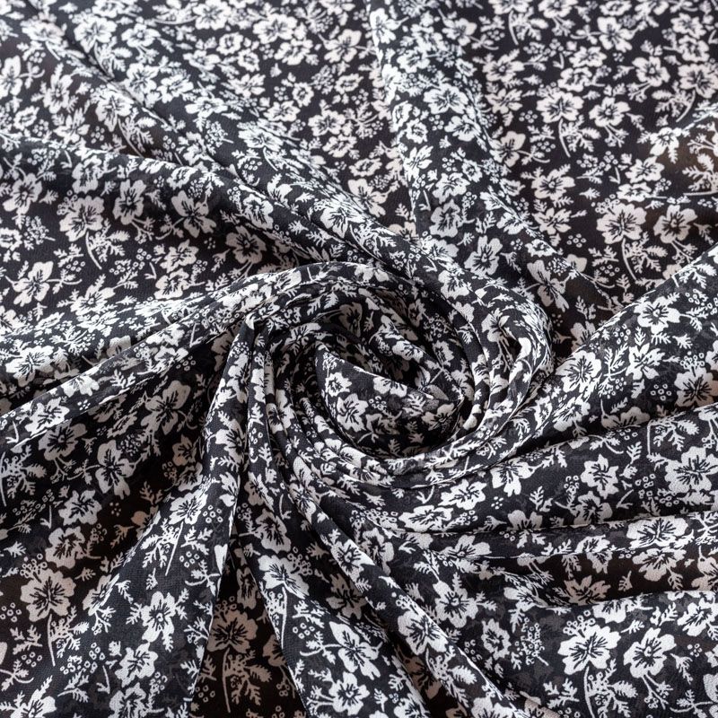 Креп-шифон 027-01437 черный принтованный в Северодвинске