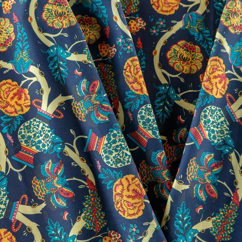 Креп-шифон 027-08366 темно-синий принтованный в Северодвинске
