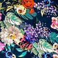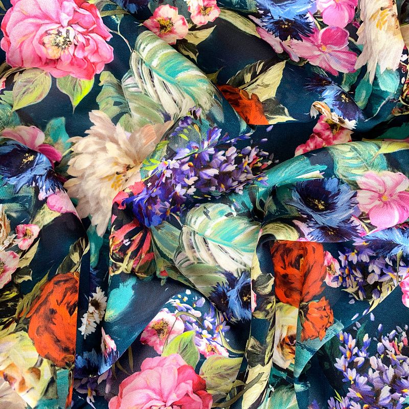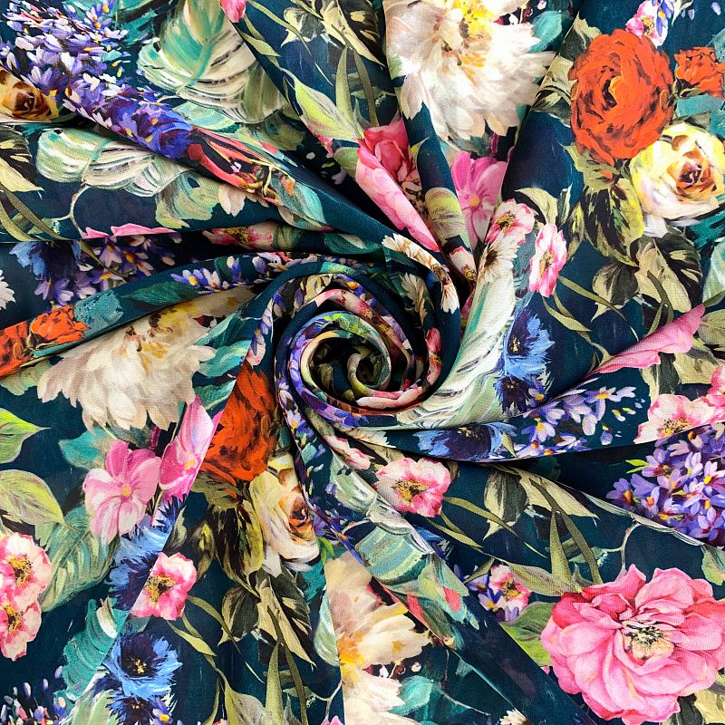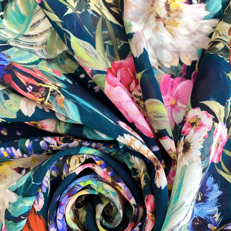 Креп-шифон натуральный К32-230 сине-зеленый принтованный в Северодвинске
