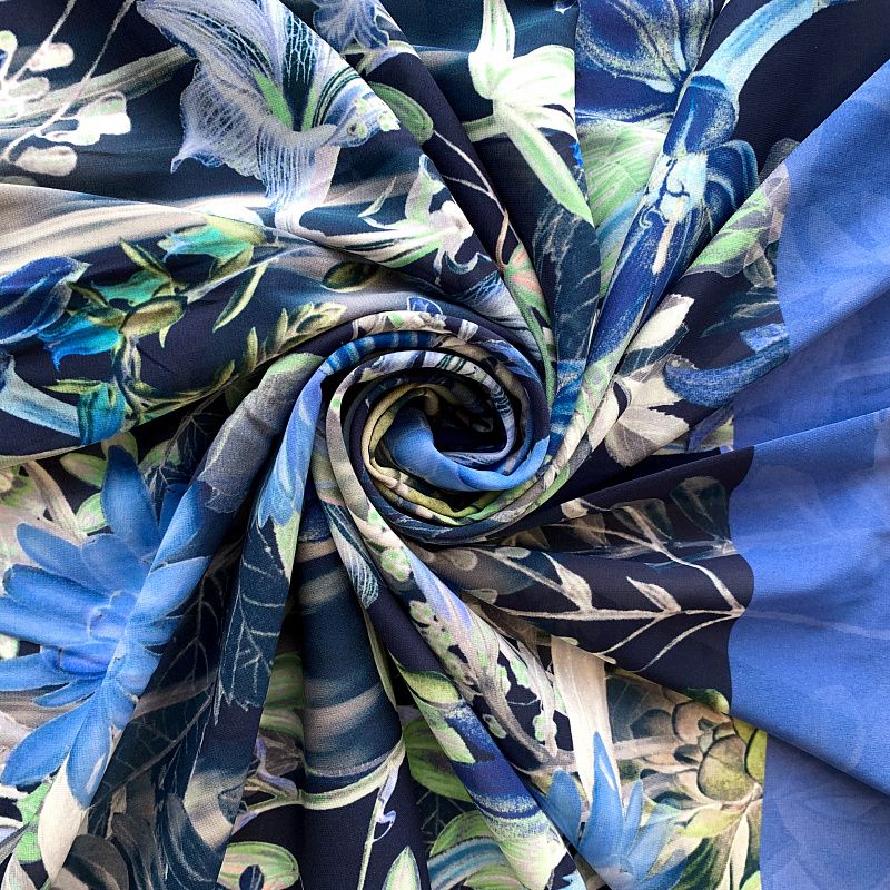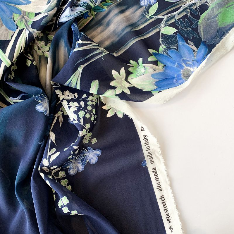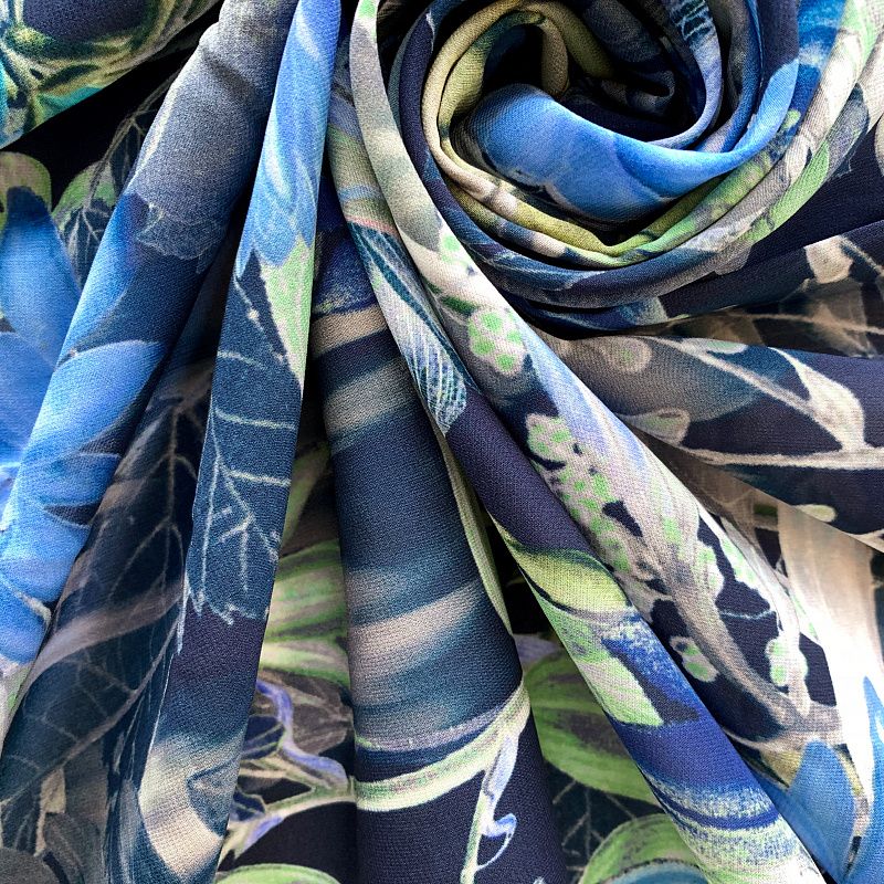 Креп-шифон натуральный К32-375 темно-синий принтованный в Северодвинске