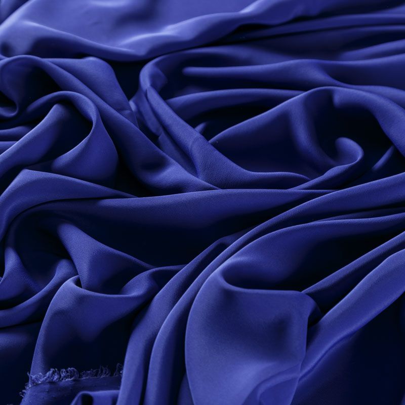 Шелковый крепдешин в синем оттенке с фиолетовым подтоном, тонкий, легкий, фактурный, приятный на ощупь, тянется за счет эластана в составе. Ткань слегка просвечивает, можно использовать подклад. Прекрасно будет смотреться в платье, юбке, тунике, рубашке или блузке.