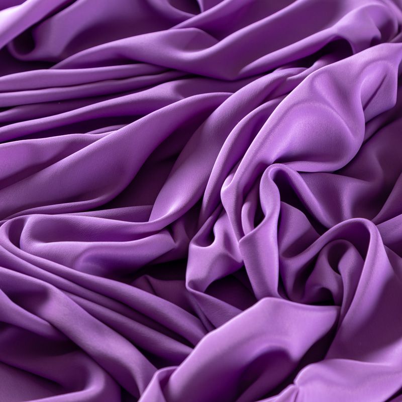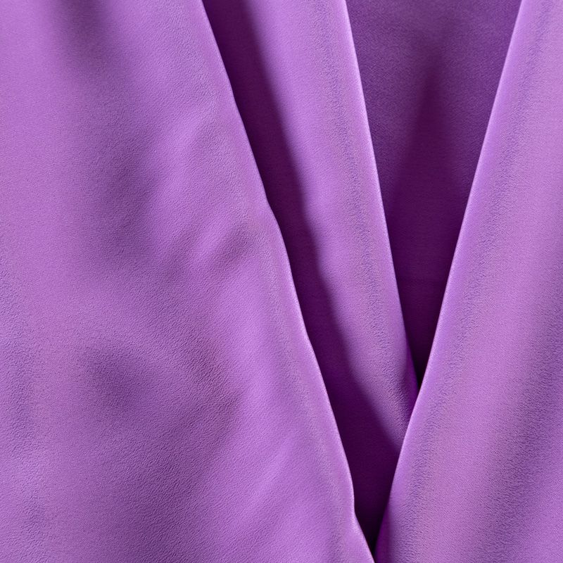 Итальянский натуральный шелковый крепдешин в сиреневом оттенке, фактурный, легкий и струящийся, слегка просвечивает, отлично драпируется. Идеально подойдет для пошива платьев и сарафанов расклешенных моделей, с воланами, летящих юбок, топов, блузки, юбки, широких брюк, костюма в пижамном стиле.