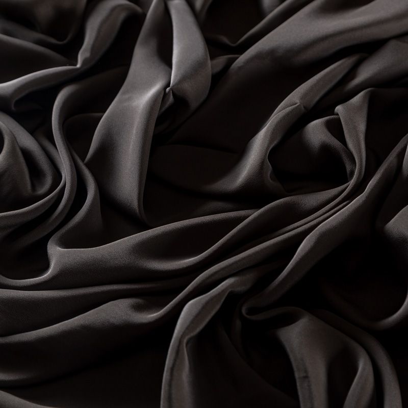 Итальянский натуральный шелковый крепдешин в темном оттенке, фактурный, легкий и струящийся, слегка просвечивает, отлично драпируется. Идеально подойдет для пошива платьев и сарафанов расклешенных моделей, с воланами, летящих юбок, топов, блузки, юбки, широких брюк, костюма в пижамном стиле.
