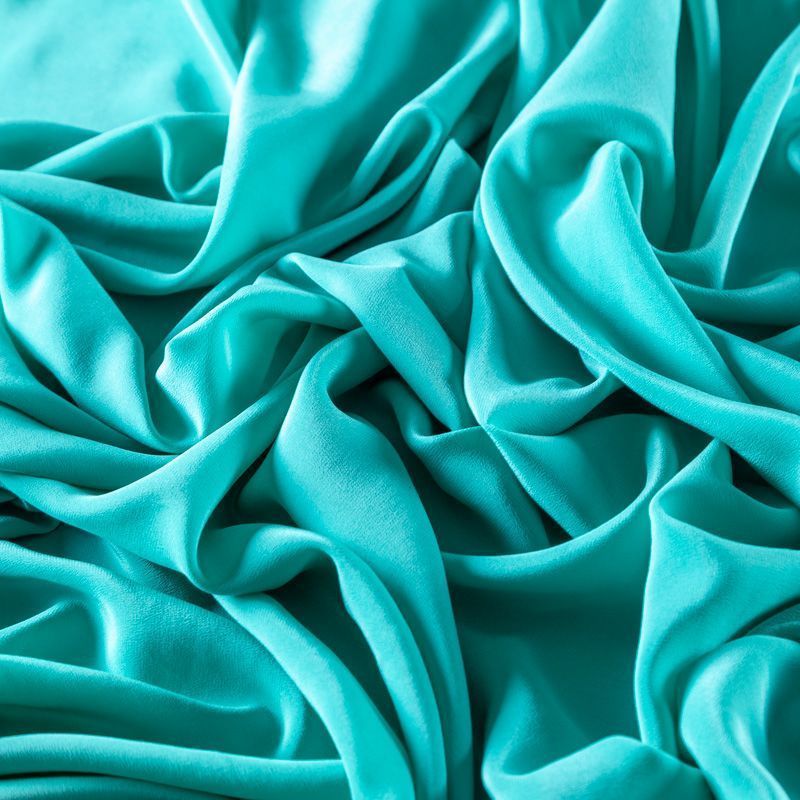Итальянский натуральный шелковый крепдешин в бирюзовом оттенке, фактурный, легкий и струящийся, слегка просвечивает, отлично драпируется. Идеально подойдет для пошива платьев и сарафанов расклешенных моделей, с воланами, летящих юбок, топов, блузки, юбки, широких брюк, костюма в пижамном стиле.
