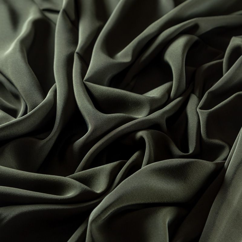 Итальянский натуральный шелковый крепдешин в зеленом оттенке, слегка просвечивает, легкий и струящийся, отлично драпируется. Идеально подойдет для пошива платьев и сарафанов расклешенных моделей, с воланами, летящих юбок, топов, блузки, юбки, широких брюк, костюма в пижамном стиле.