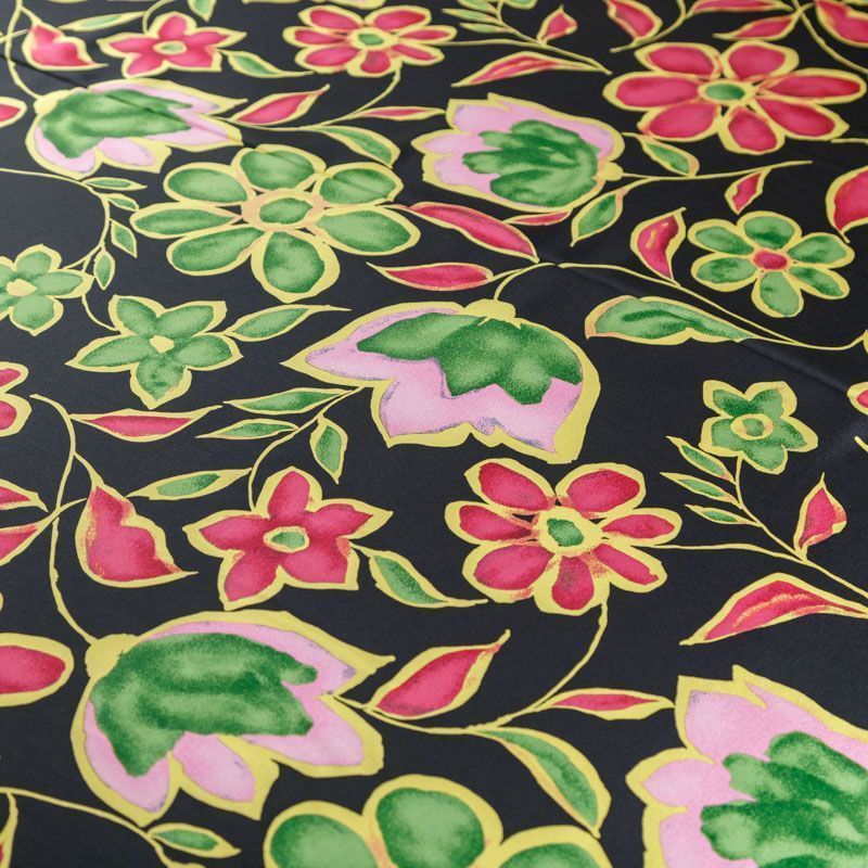 Итальянский крепдешин с матовой лицевой поверхностью со стилизованным акварельным цветочным принтом, тонкий, слегка прозрачный, отлично драпируется, легкий и струящийся. Идеально подойдет для пошива платьев и сарафанов расклешенных моделей, с воланами, летящих юбок, топов, блузки, костюма в пижамном стиле.