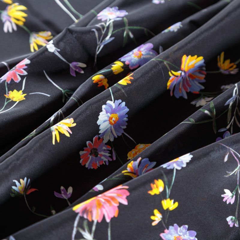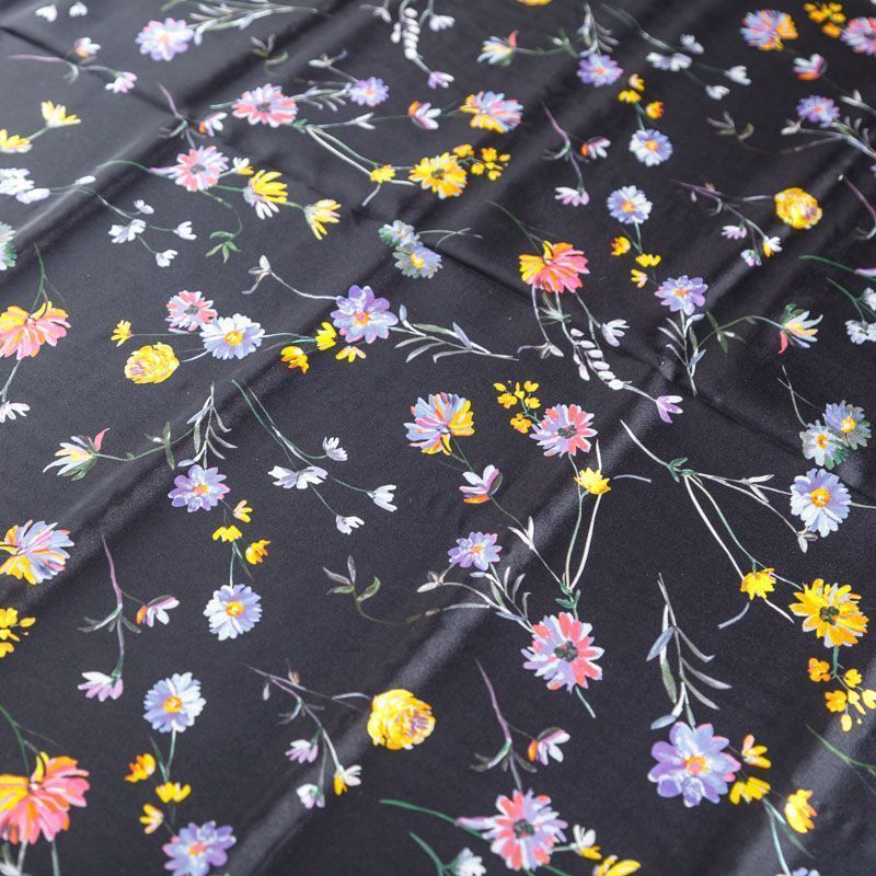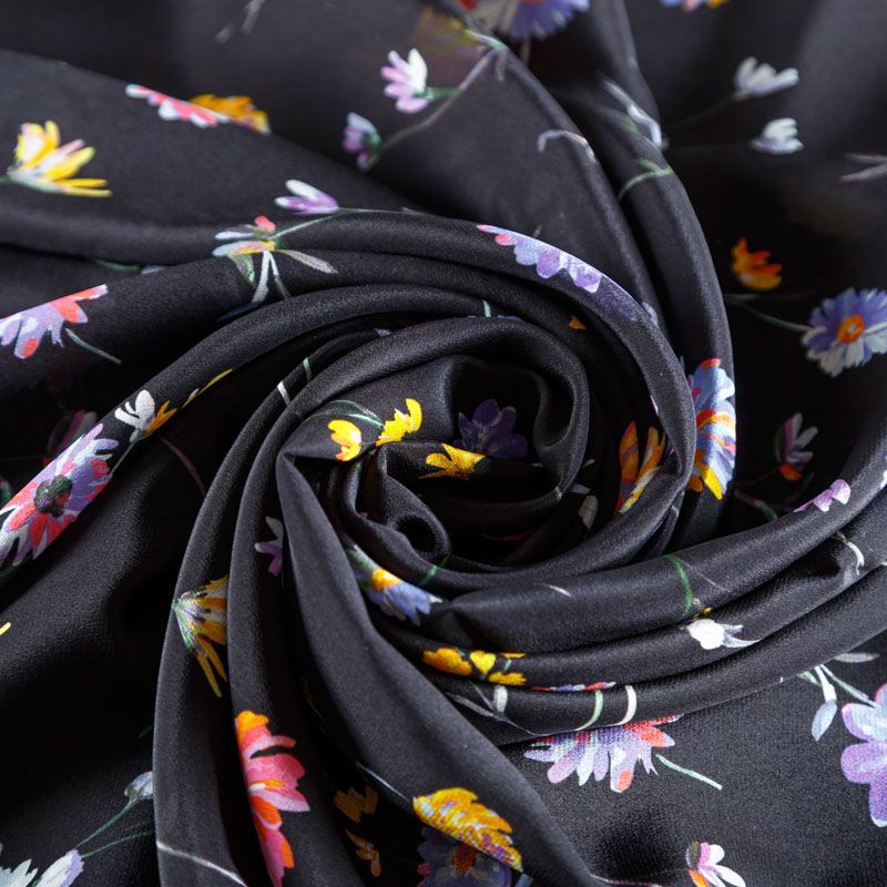 Крепдешин натуральный К24-042 черный принтованный в Северодвинске