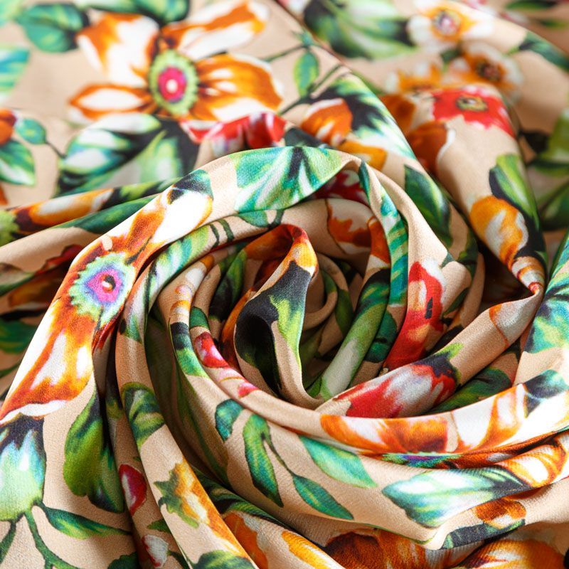 Крепдешин натуральный К27-037 бежевый принтованный в Северодвинске