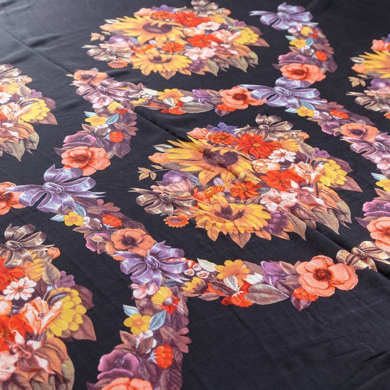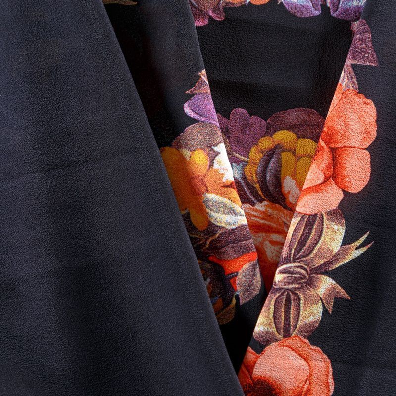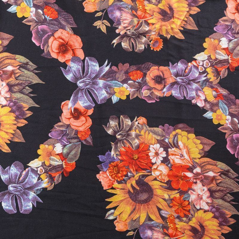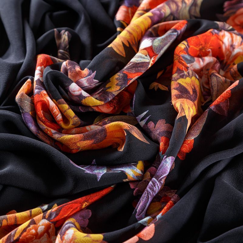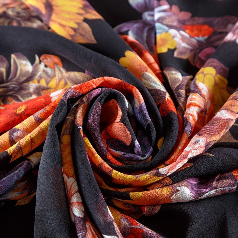 Крепдешин натуральный К29-785 черный принтованный в Северодвинске