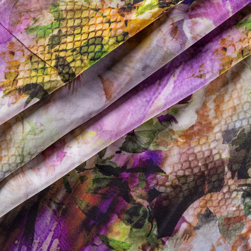 Крепдешин натуральный К2-0030 фиолетовый принтованный в Северодвинске