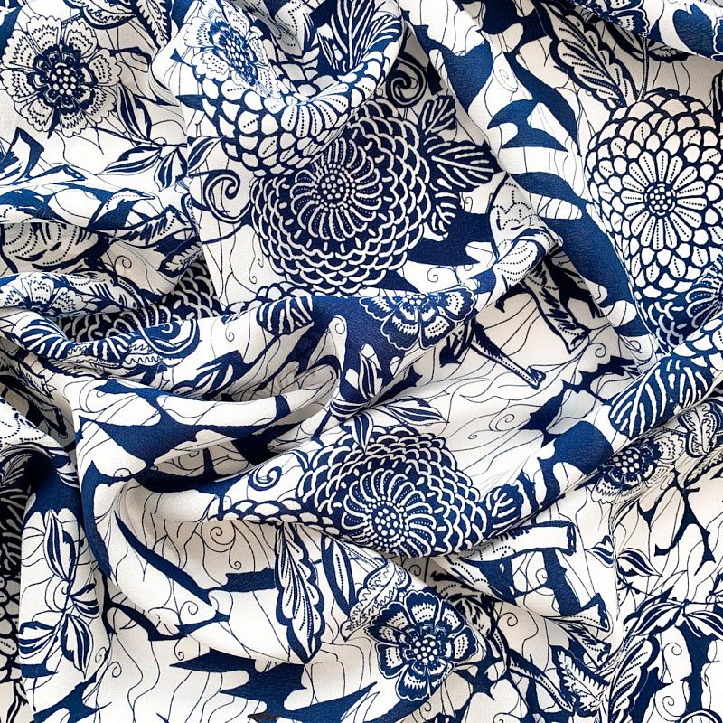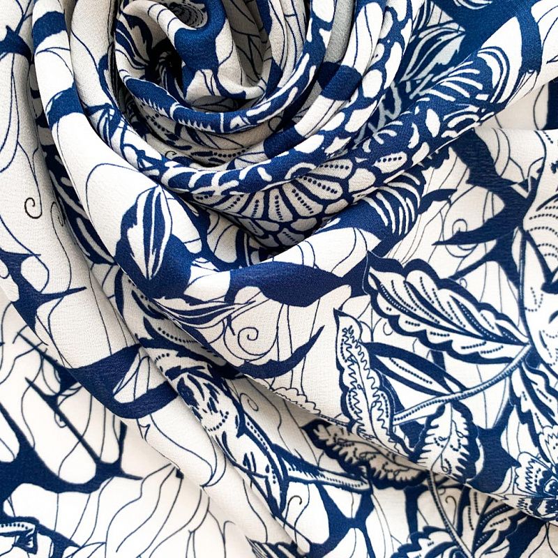 Крепдешин натуральный К32-233 молочный принтованный в Северодвинске