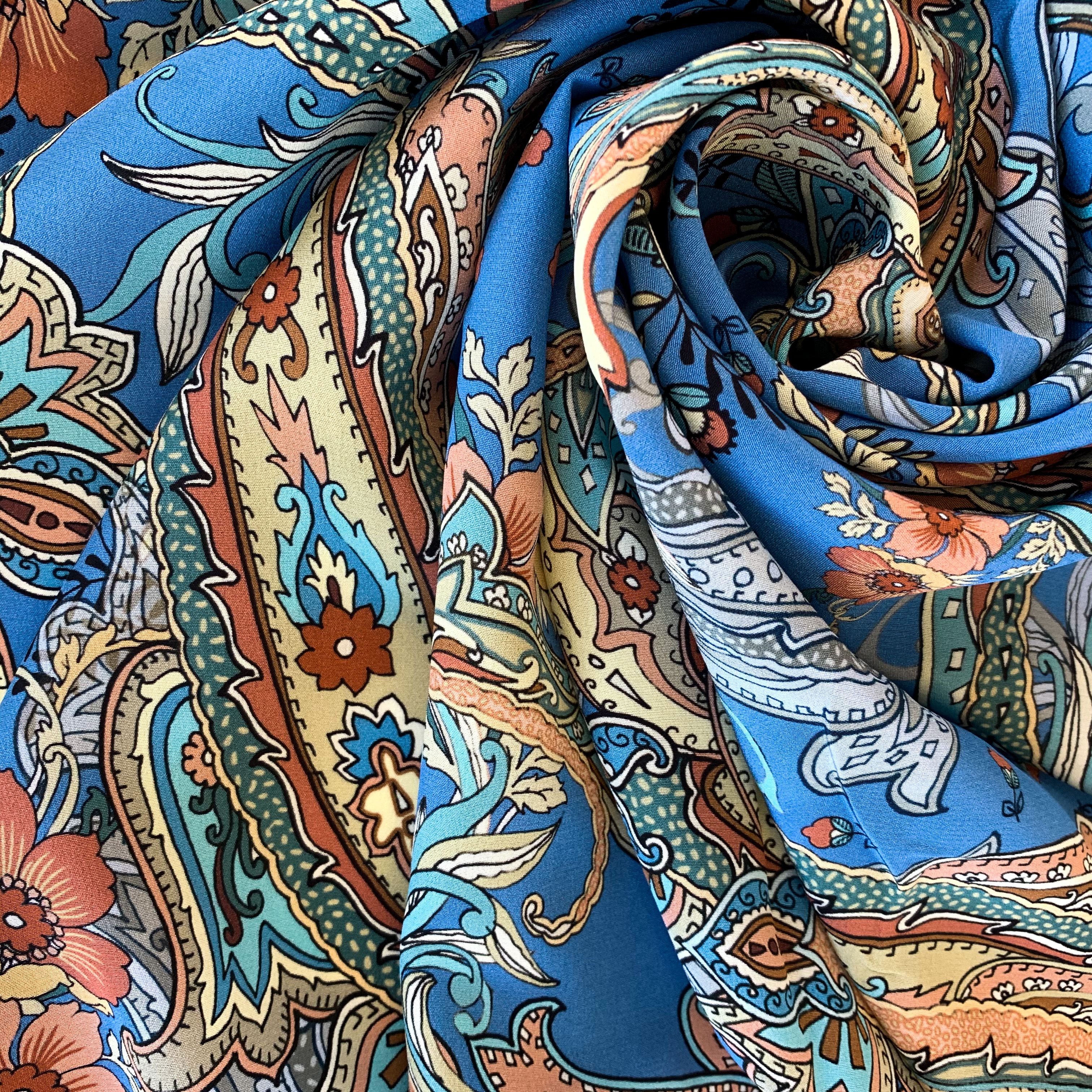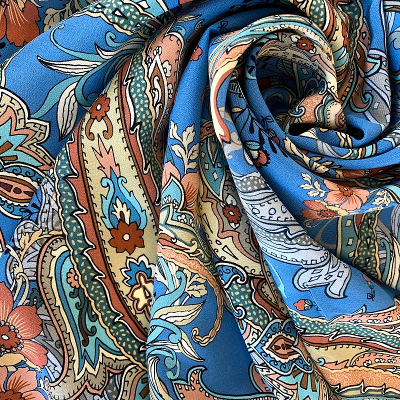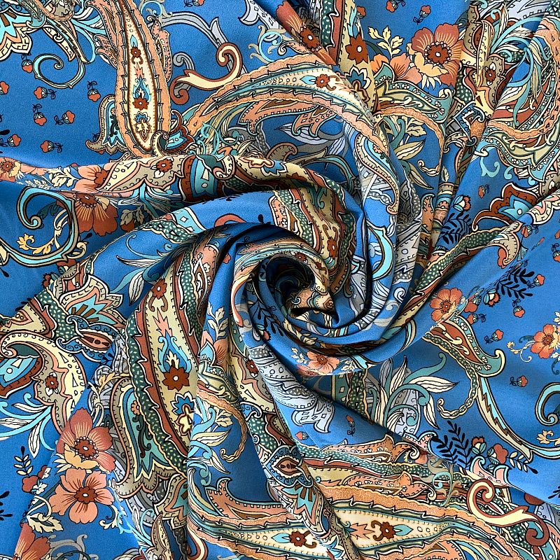Крепдешин натуральный К32-250 голубой принтованный