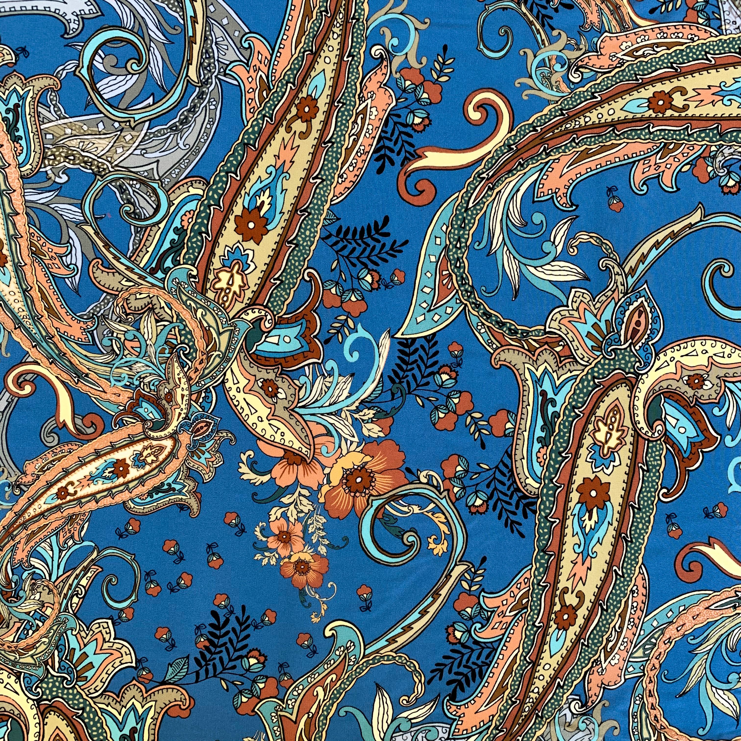 Крепдешин натуральный К32-250 голубой принтованный в Северодвинске