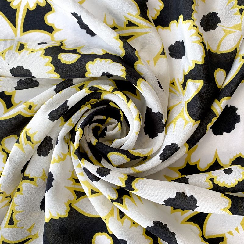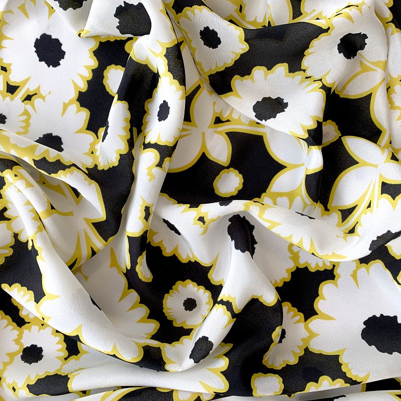 Крепдешин натуральный К32-374 черный принтованный в Северодвинске