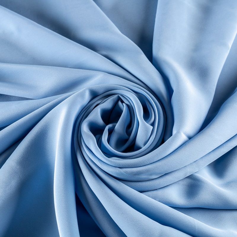 Шелковый крепдешин небесного оттенка, тонкий, легкий, фактурный, приятный на ощупь. Ткань слегка просвечивает, можно использовать подклад. Прекрасно будет смотреться в платье, юбке, тунике, рубашке или блузке.