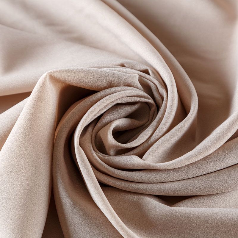 Крепдешин холодного бежевого оттенка, тонкий, легкий, фактурный, приятный на ощупь. Очень пластичный, тянется за счет эластана в составе, прекрасно драпируется и струится. Ткань слегка просвечивает, можно использовать подклад. Идеально будет смотреться в платье, юбке, тунике, рубашке или блузке.