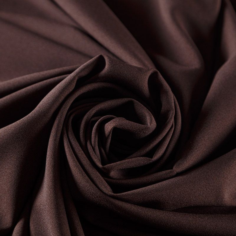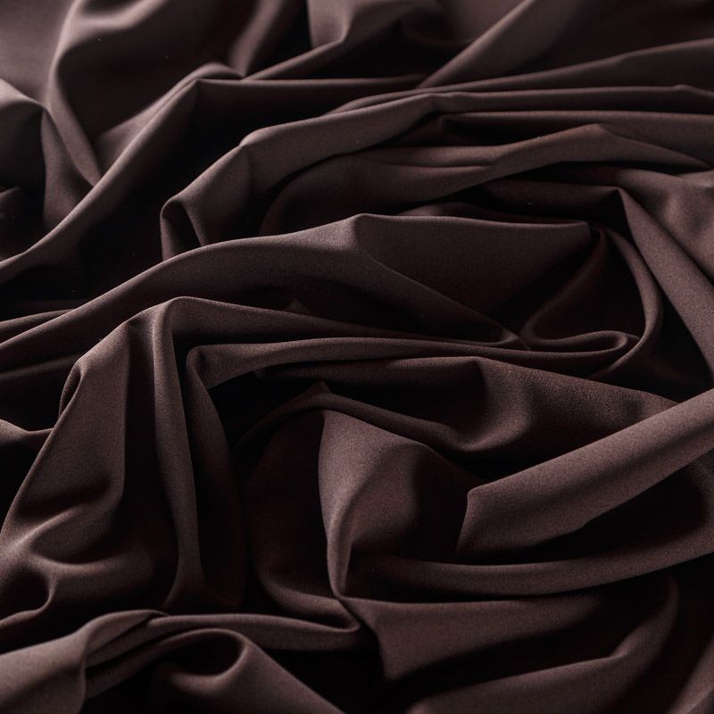 Крепдешин темно-коричневого оттенка, тонкий, легкий, фактурный, приятный на ощупь. Очень пластичный, тянется за счет эластана в составе, прекрасно драпируется и струится. Ткань слегка просвечивает, можно использовать подклад. Идеально будет смотреться в платье, юбке, тунике, рубашке или блузке.