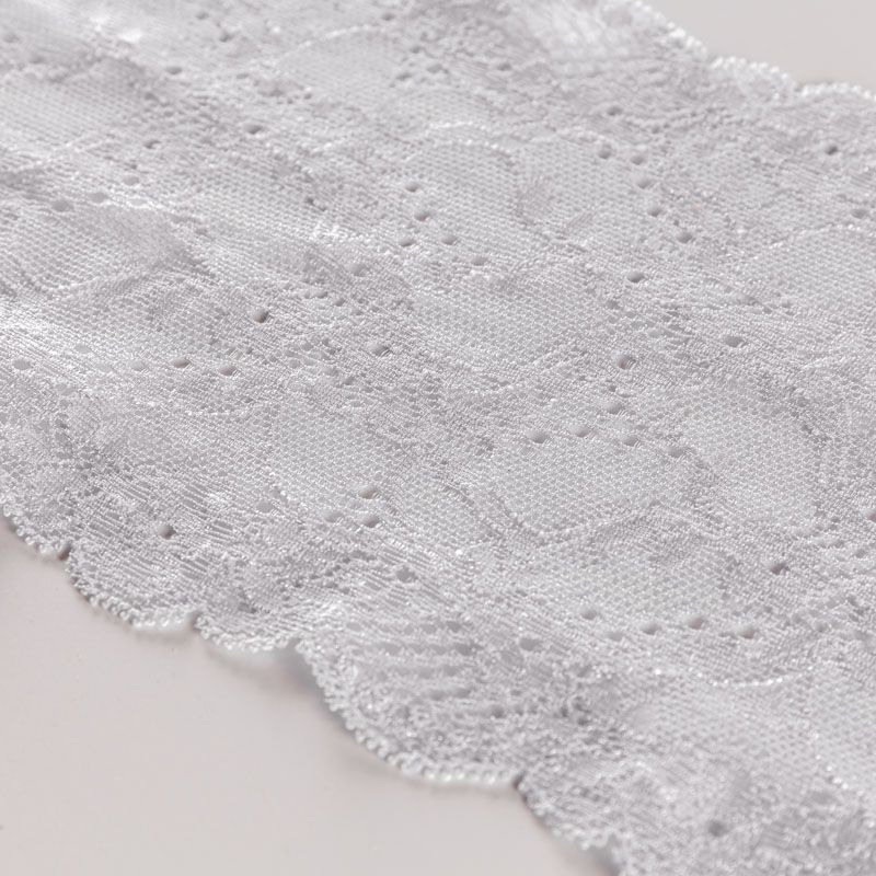 Эластичное кружево сочетает в себе мягкость, прочность и красоту, благодаря своей упругости оно долго не теряет первоначальную форму. Используется для пошива нижнего белья, а так же применяется как отделочный декор в одежде.
