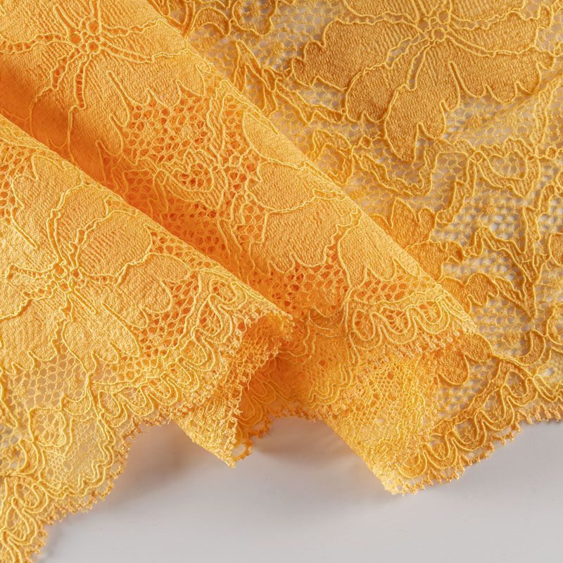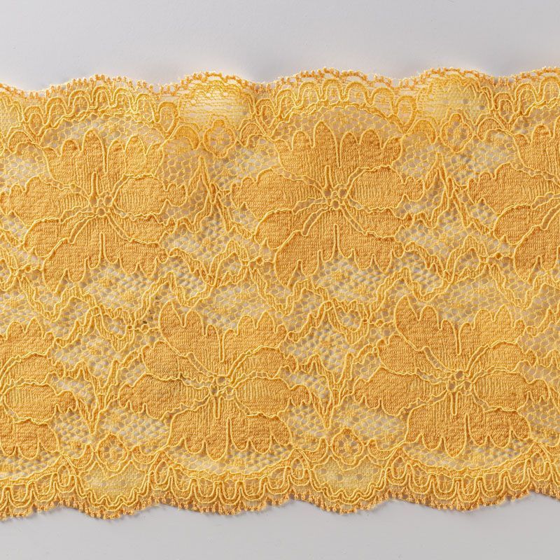 Эластичное кружево сочетает в себе мягкость, прочность и красоту, благодаря своей упругости оно долго не теряет первоначальную форму. Используется для пошива нижнего белья, а так же применяется как отделочный декор в одежде.