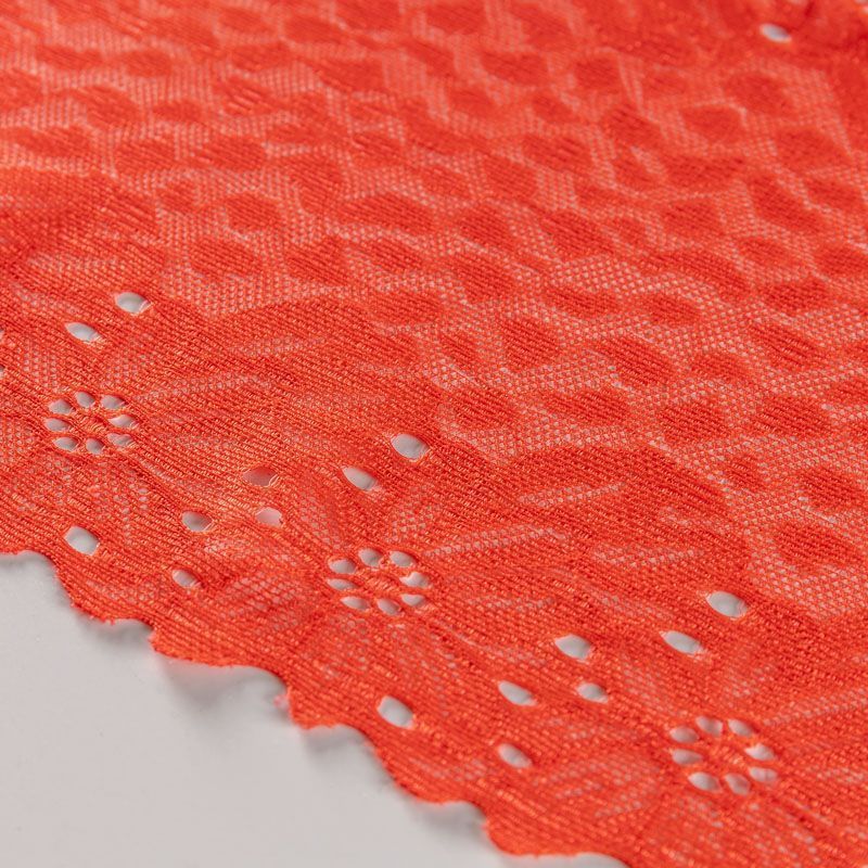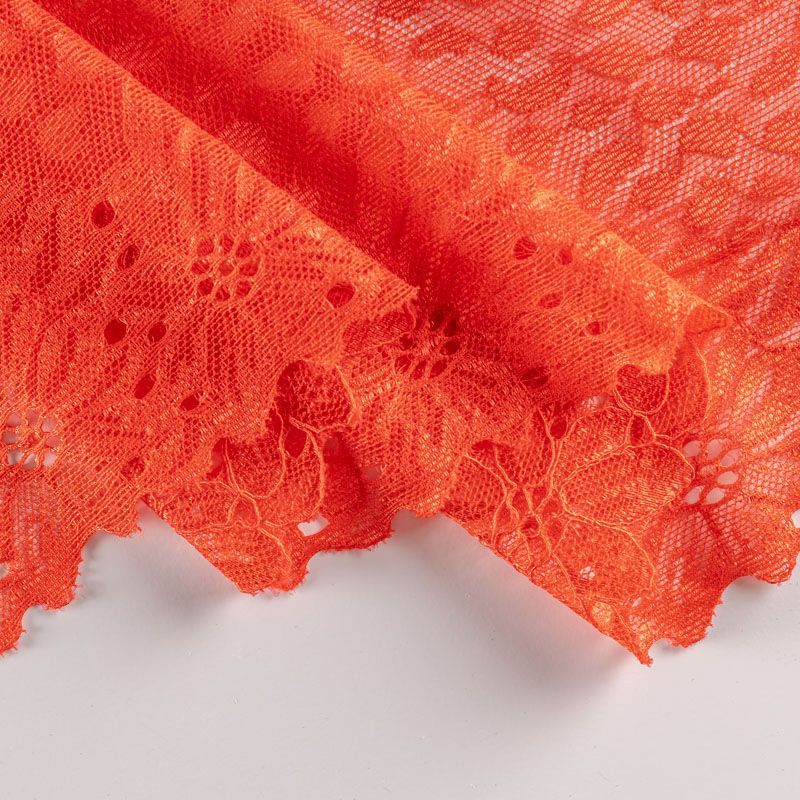 Эластичное кружево сочетает в себе мягкость, прочность и красоту, благодаря своей упругости оно долго не теряет первоначальную форму. Используется для пошива нижнего белья, а так же применяется как отделочный декор в одежде.