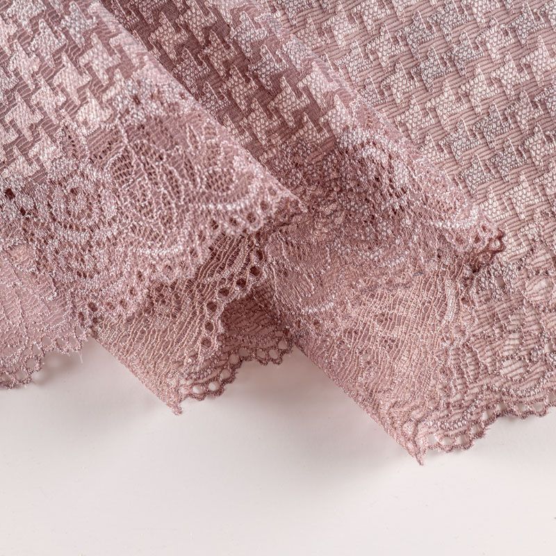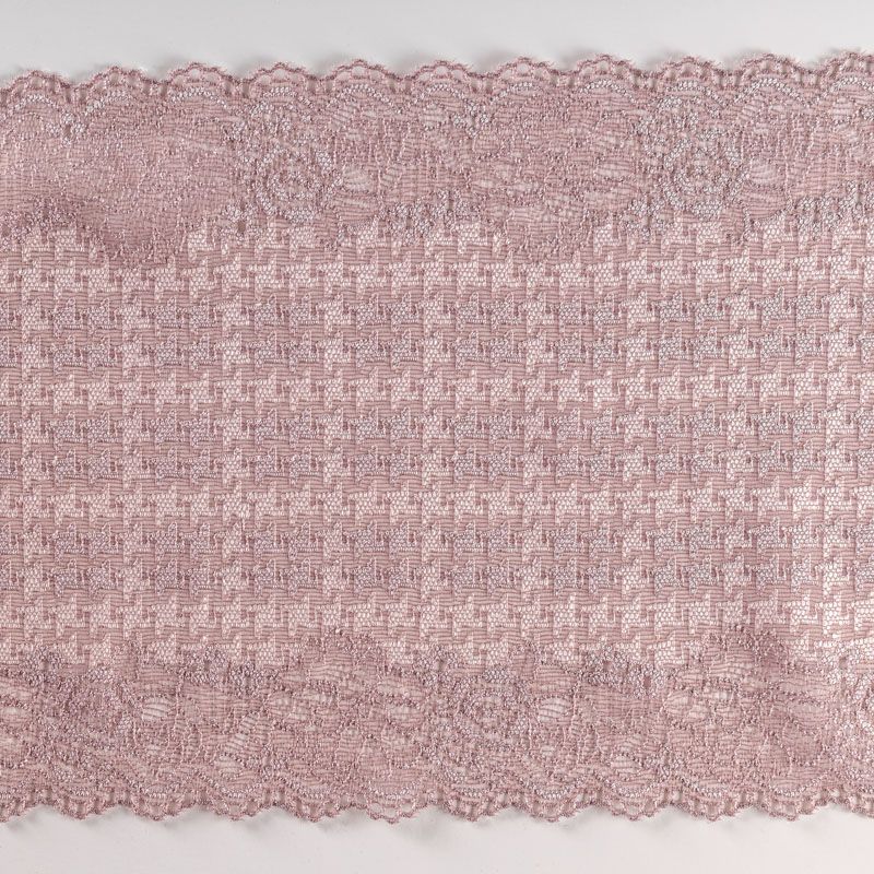 Эластичное кружево сочетает в себе мягкость, прочность и красоту, благодаря своей упругости оно долго не теряет первоначальную форму. Используется для пошива нижнего белья, а так же применяется как отделочный декор в одежде.