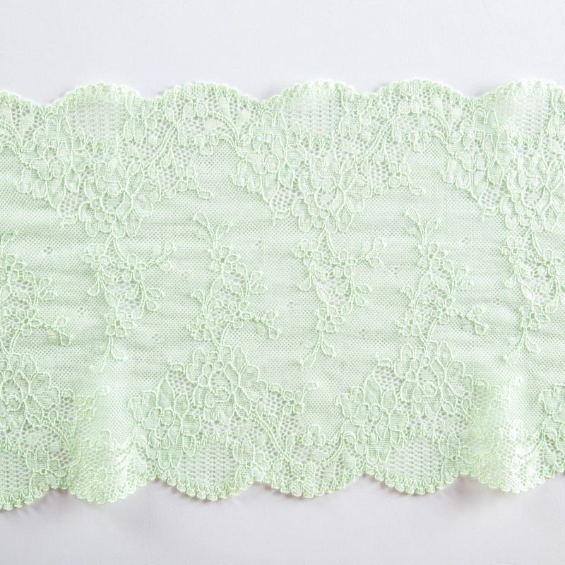 Эластичное кружево сочетает в себе мягкость, прочность и красоту, благодаря своей упругости оно долго не теряет первоначальную форму. Используется для пошива нижнего белья, а так же применяется как отделочный декор в одежде.