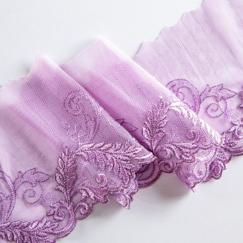 Кружево вышивка на сетке 120 мм Ф01-0007 сиреневый с люрексом