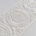 Кружево на сетке представляет собой кружевное полотно, основа которого сетка или фатин. Применяется для декоративной отделки лёгкой женской одежды и домашнего текстиля. Края фигурные, обработаны с двух сторон.