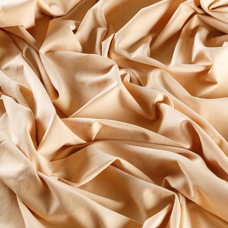 Мягкий однотонный трикотаж на хлопковой основе с добавлением эластана. Ткань средней плотности, эластичный, достаточно пластичный, с лицевой, и с изнаночной стороны гладкая, приятная к телу. Кулирка отлично подходит для пошива нижнего белья, изделий для детей, а также для спортивной и домашней одежды, пижамы.