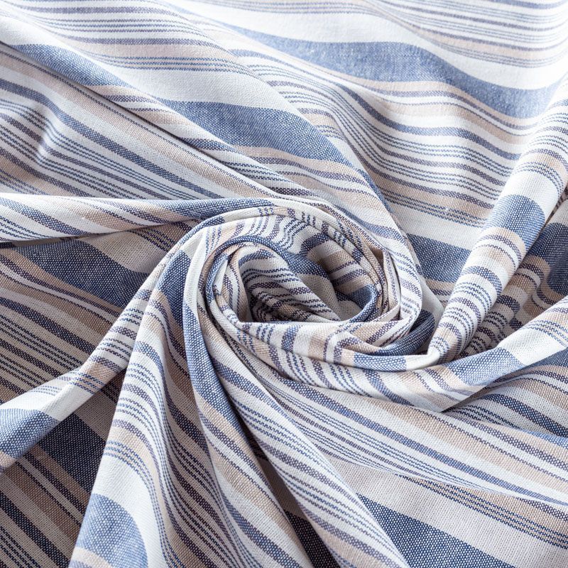 Льняная костюмно-плательная ткань в вертикальную полоску. Ткань прочная и плотная, с выразительной матовой рельефной поверхностью и полотняным переплетением, отлично держит форму, комфортная в изделии. Стильный вариант для летних пальто, кардиганов, платьев, сарафанов, юбок, жакетов, брюк или шорт.