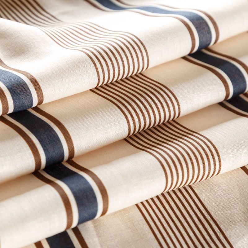 Итальянский плательно-рубашечный лен средней плотности в вертикальные разноразмерные полоски в сине-коричневом гамме. Ткань прочная, имеет матовую рельефную поверхность и полотняное переплетение, отлично держит форму, слегка просвечивает, пластичная, комфортная в изделии. Отлично подойдет для пошива для летних костюмов, рубашек, туник, платьев, сарафанов, юбок, жакетов, брюк или шорт.