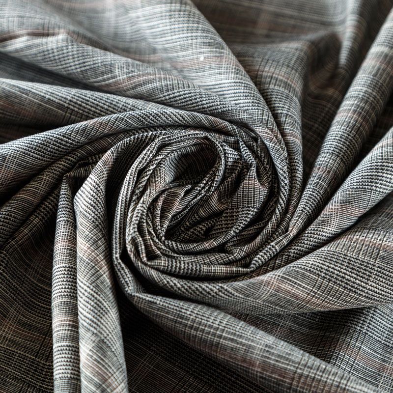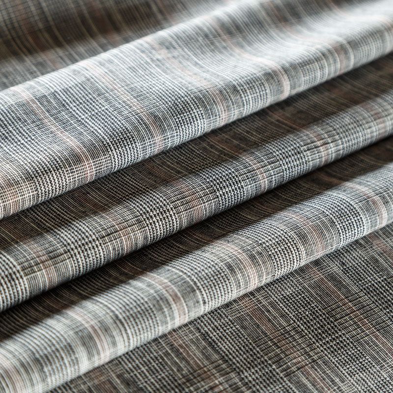 Итальянский костюмно-плательный лен в клетку в сером оттенке. Ткань прочная, имееет на ощупь приятную поверхность, а визуально - выраженный рельеф и полотняное переплетение, держит форму, немного суховатая. Подойдет для пошива костюмов, брюк, шорт, в том числе мужских, юбок, платьев, сарафанов, топов, комбинезонов, жакетов, кардиганов.