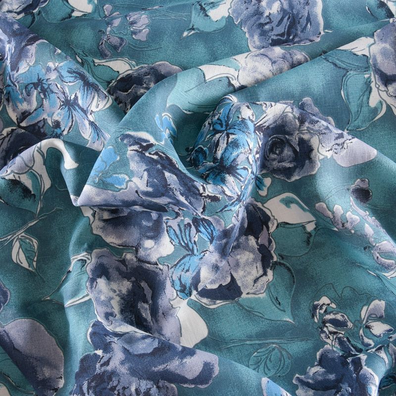 Лен натуральный 035-11767 темно-бирюзовый принтованный в Северодвинске