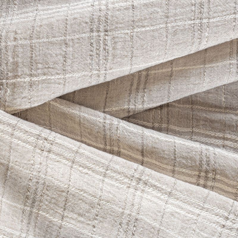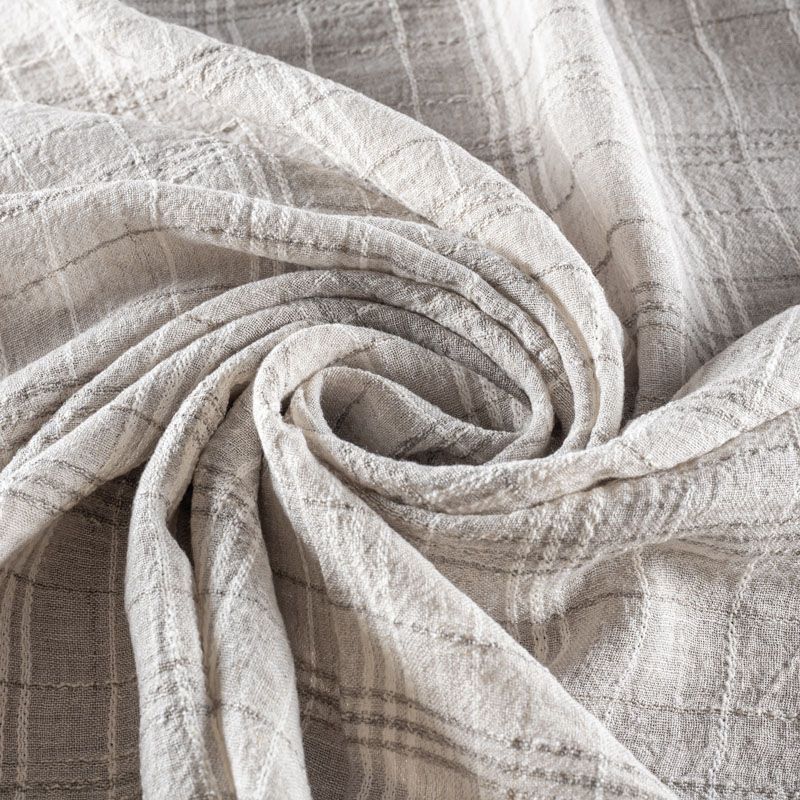 Итальянский лен с добавлением вискозы средней плотности со сложной "клетчатой" геометрией в светло-серых оттенках. Различная толщина нитей создает эффектную фактуру. Ткань пластичная, гибкая за счет плетения, матовая, мягкая, приятная на ощупь, не много рыхлая, комфортная в изделии. Отлично подойдет для пошива летних костюмов, рубашек, туник, платьев, сарафанов, юбок, жакетов, брюк или шорт, легкого пальто.