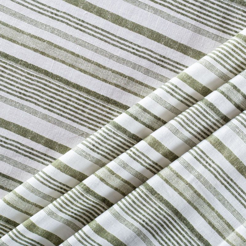 Итальянский лен с добавлением вискозы средней плотности с принтом в разноразмерную вертикальную полоску. Ткань прочная, имееет выразительную матовую рельефную поверхность и полотняное переплетение, хорошо держит форму. Подойдет для пошива весенне-летних костюмов, платьев, брюк, шорт, топов, сарафанов.