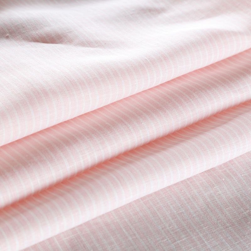 Итальянский костюмно-плательный лен с добавлением вискозы в вертикальную тонкую полоску в розовом оттенке. Ткань прочная, имееет на ощупь приятную, гладкую поверхность, а визуально - выраженный рельеф и полотняное переплетение, держит форму, пластичная. Подойдет для пошива костюмов, брюк, шорт, юбок, платьев, сарафанов, топов, комбинезонов, жакетов, кардиганов.