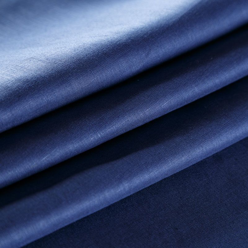 Итальянский плательно-рубашечный лен с добавлением вискозы в глубоком синем оттенке. Ткань прочная, имееет на ощупь приятную, гладкую поверхность, а визуально - выраженный рельеф и полотняное переплетение, держит форму, пластичная. Подойдет для пошива рубашек, брюк, шорт, юбок, платьев, сарафанов, топов, туники, комбинезона.