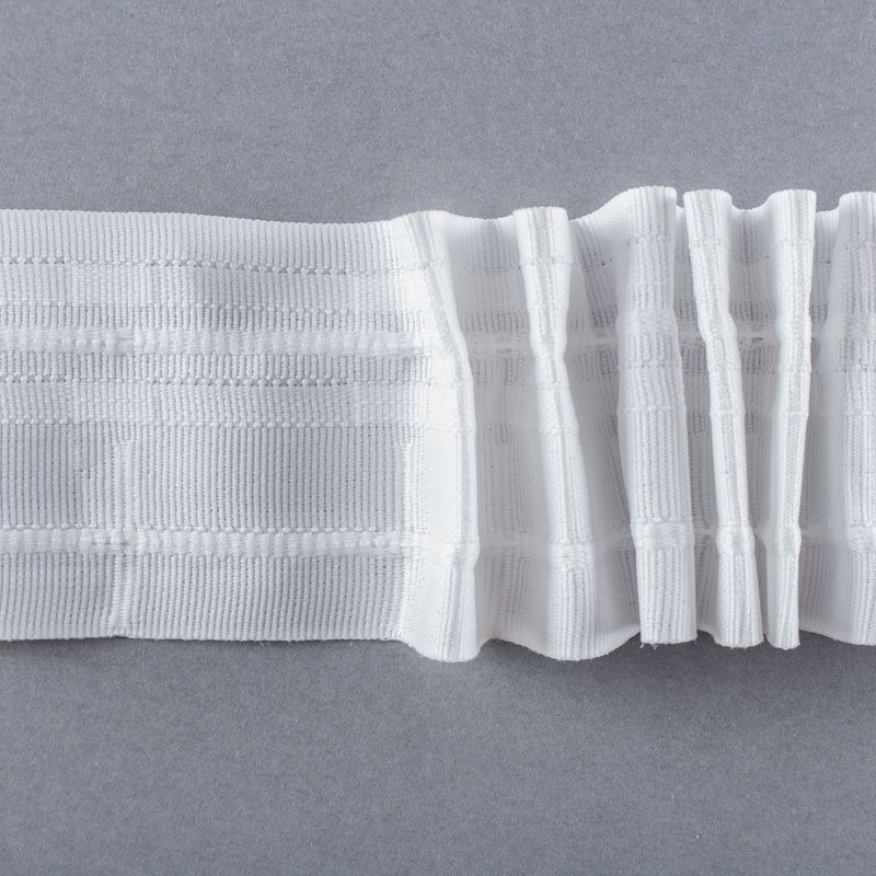 Шторная лента мягкая, не прозрачная для плотных тюлевых полотен и портьерных тканей c карандашной складкой. Сокращение - регулируемое, произвольное, 2 ряда белых текстильных кармашков, стягивается на 4 нитки, крепление - крючки.