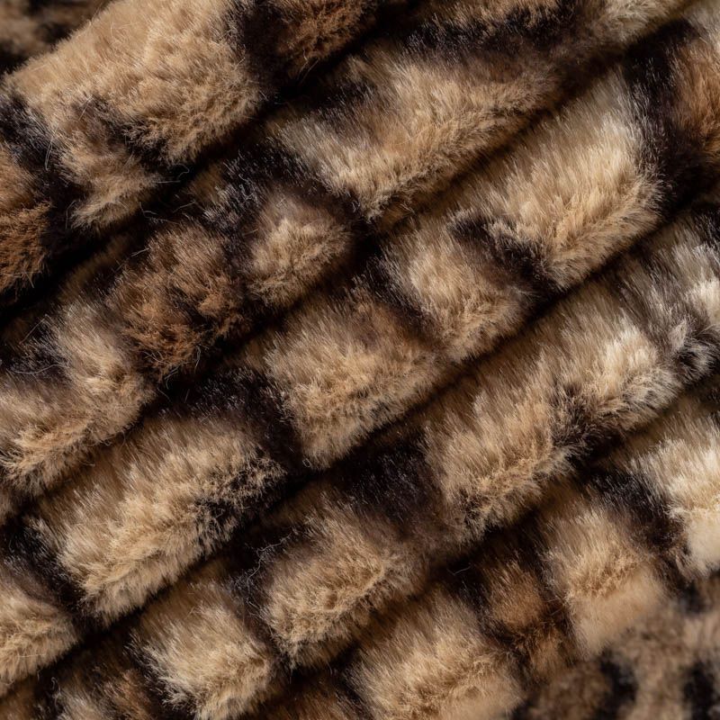 Мех с низким ворсом, имитирующий мутон на синтетической основе. Мягкий, плотный, пластичный. Ворс имеет сдержанный блеск и направление. Принт леопардовый, естественных оттенков. Идеально подойдет для пошива шубки, мехового пальто или отделки.