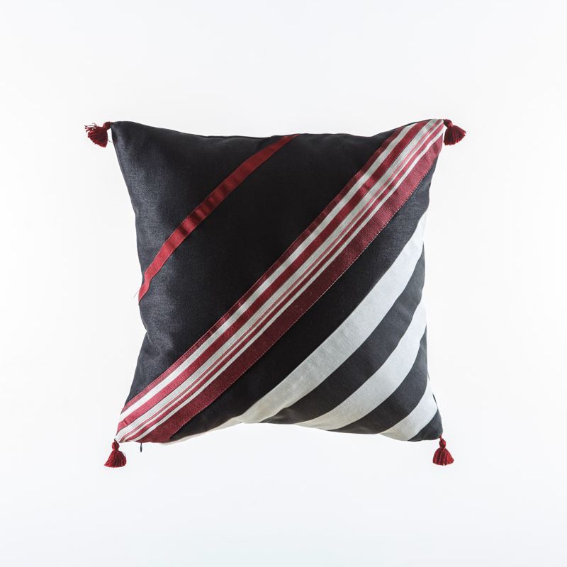 Оригинальная дизайнерская наволочка на подушку 45х45 см. Выполнена из смесового хлопка и декорирована контрастной тесьмой и кисточками. Потайная молния расположена в нижнем шве. Декоративные подушки сделают акцет на цветовой гамме Вашего помещения, подчеркнут особенности интерьерного стиля или тематику оформления. Внимание! Подушка-вкладыш или синтепон приобретаются отдельно.