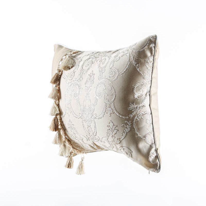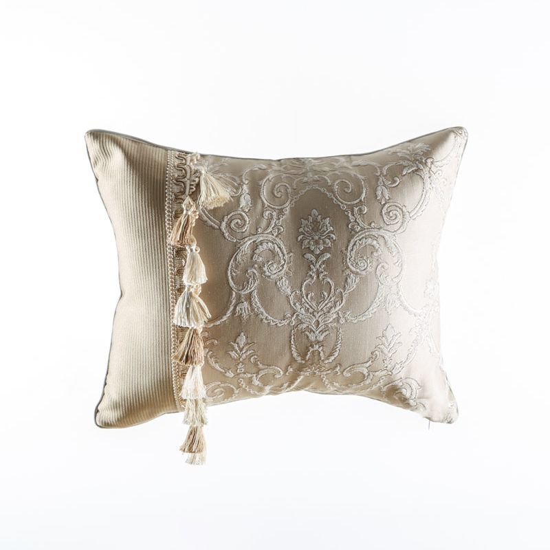Оригинальная дизайнерская наволочка на подушку 50х40 см. Выполнена из жаккарда и декорирована круглым кантом и бахромой. Потайная молния расположена в нижнем шве. Декоративные подушки сделают акцет на цветовой гамме Вашего помещения, подчеркнут особенности интерьерного стиля или тематику оформления. Внимание! Подушка-вкладыш или синтепон приобретаются отдельно.