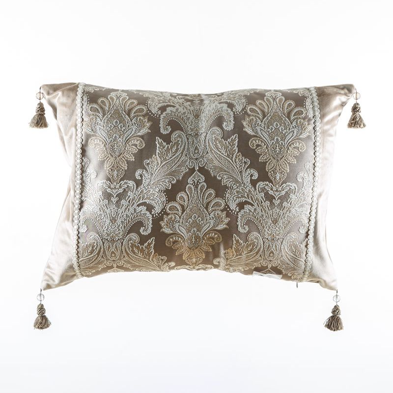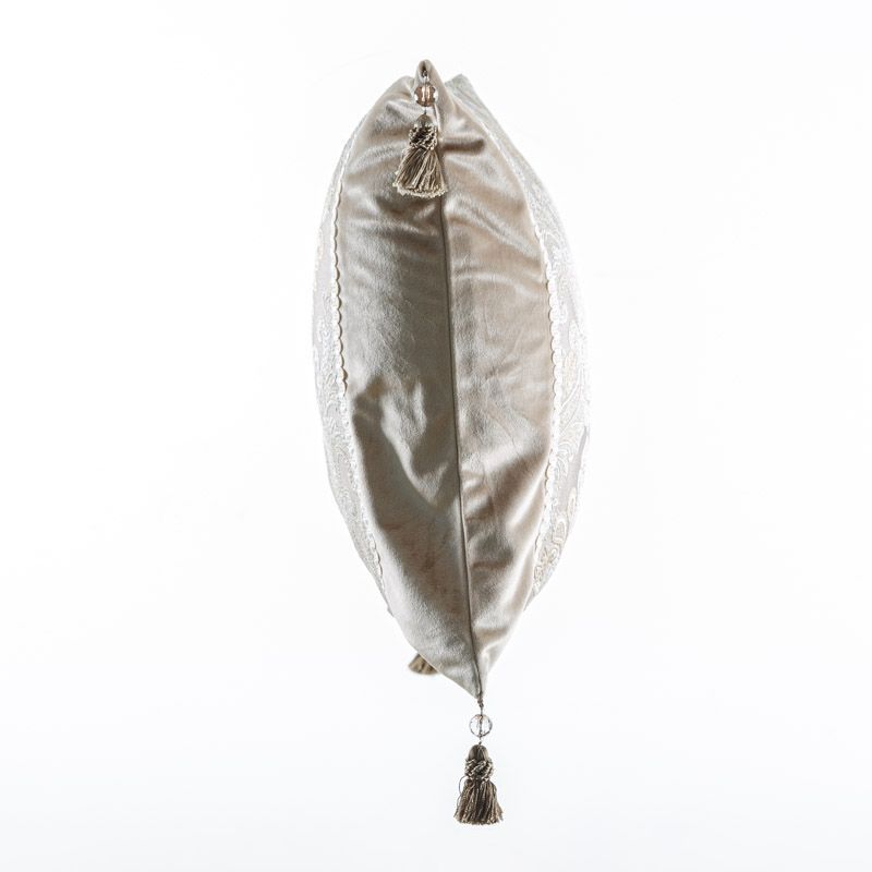 Оригинальная дизайнерская наволочка на подушку 60х45 см. Выполнена из бархата и жаккарда и декорирована ажурной тесьмой и кисточками. Потайная молния расположена в нижнем шве. Декоративные подушки сделают акцет на цветовой гамме Вашего помещения, подчеркнут особенности интерьерного стиля или тематику оформления. Внимание! Подушка-вкладыш или синтепон приобретаются отдельно.