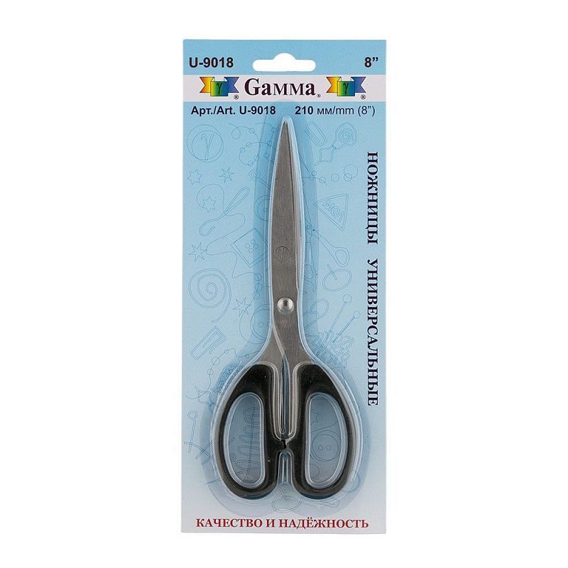 Универсальные ножницы используются для рукоделия, в офисе и быту для различных целей. Металлические с пластиковыми термостойкими ручками, которые не плавятся при соприкосновении с утюгом. Ножницы изготовлены из инструментальной стали марки 30х13. Сталь содержит хром, который придает инструменту дополнительную прочность. Режущие поверхности сходятся идеально. Кончики легко разрезают материал, не заминая край; режущие поверхности сходятся идеально.