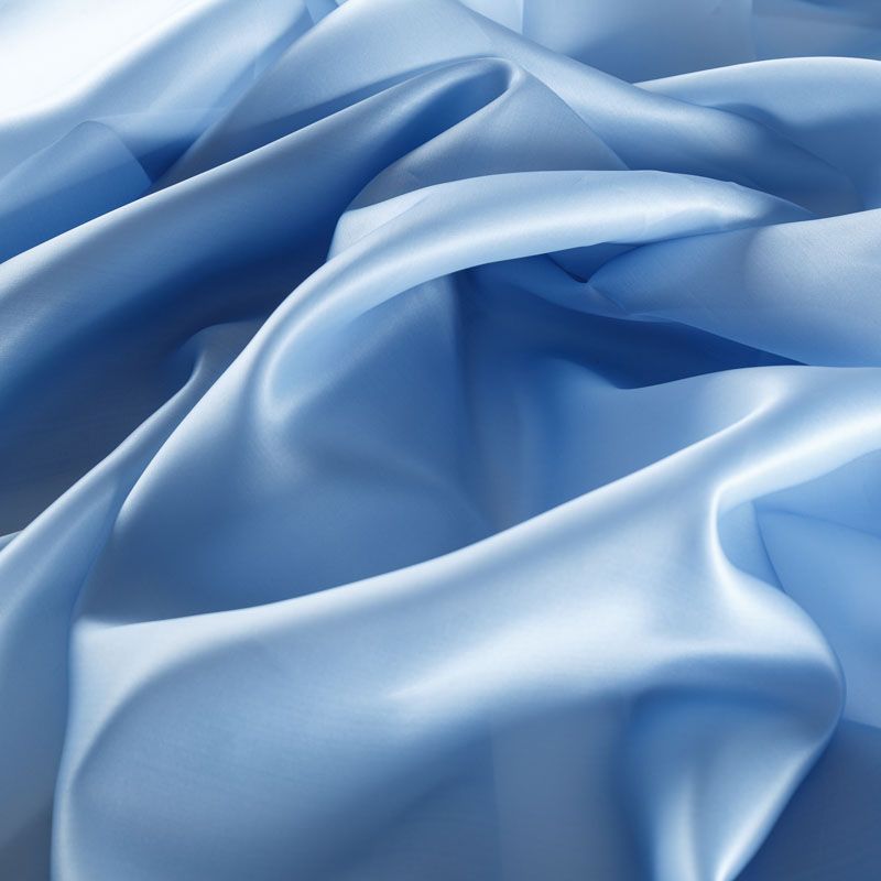 Итальянская шелковая органза с искрящейся матовой поверхностью и слегка атласной изнанкой небесно-голубого оттенка. Ткань легкая, тонкая, пластичная, хорошо драпируется, полупрозрачная, отлично держит форму. Подойдет на блузку, рубашку, платье, тунику или юбку на подкладе.