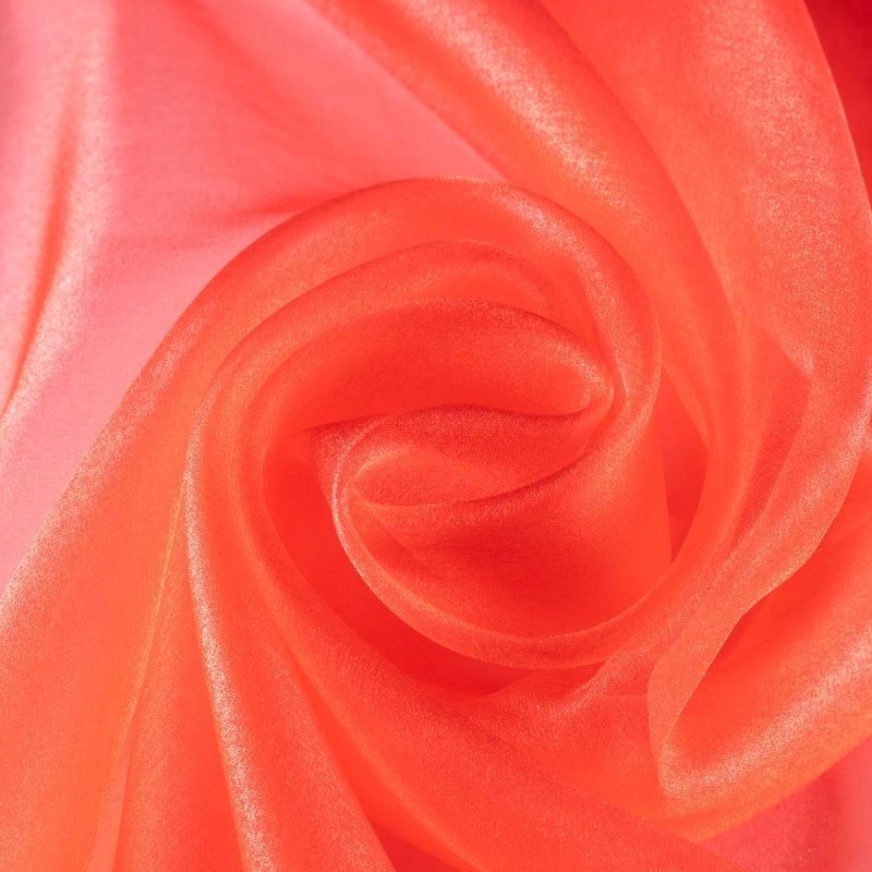 Легчайший, прозрачный, но не рыхлый материал с искрящейся переливчатой поверхностью. Изящный и воздушный, не деформируется, прекрасно держит форму и драпируется. Подойдет для пошива платья или блузы свободного силуэта на подкладе, а также для декора.