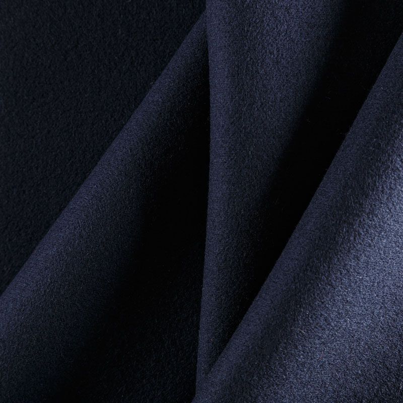 Плотный итальянский шерстяной пальтовый трикотаж темно-синего оттенка. Ткань очень приятная на ощупь, мягкая, пластичная, теплая и уютная. Прекрасно подойдет для пошива легких пальто, пальто на подкладе, теплых жакетов, курток, кардиганов, юбок или шорт.