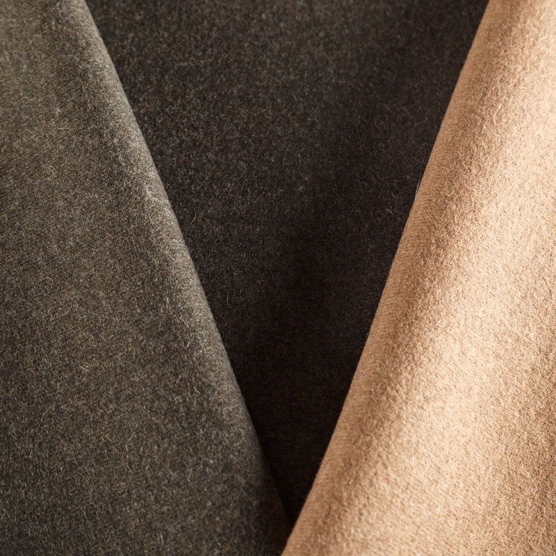 Двухслойный двусторонний итальянский шерстяной трикотаж в карамельно-коричневой гамме. Полотно пластичное, приятное на ощупь, не колется, теплое и уютное. При соответствующей обработке швов одежду из этого трикотажа можно носить на обе стороны. Подойдет для пошива теплых кардиганов, пальто, костюмов, теплого платья, пончо, кейпа.
