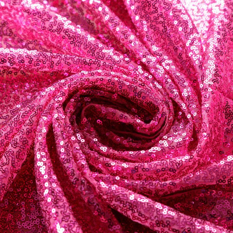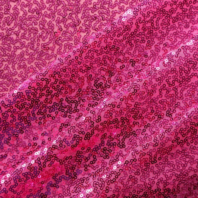 Блестящие пайетки в ярком розовом оттенке. Мелкие, размером около 3 мм, расположены в хаотичном порядке. Основа - мягкая и эластичная сетка. Ткань полупрозрачная, может потребоваться подклад. Подойдет для вечернего, коктейльного платья, юбки, нарядных детских изделий, танцевальных и сценических костюмов.