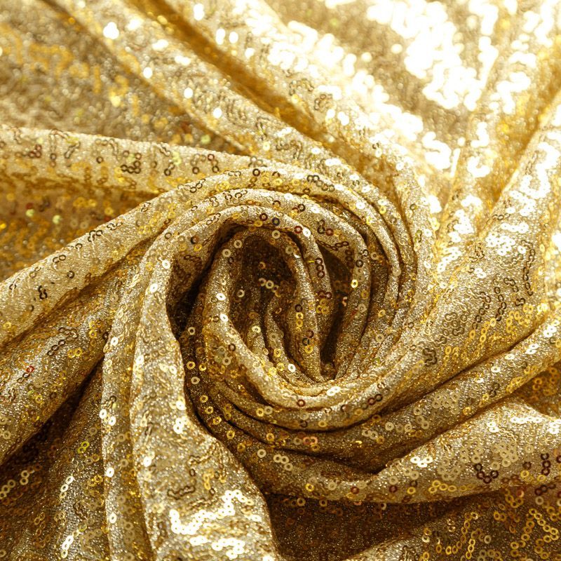 Эластичное трикотажное полотно по всей поверхности хаотично усеяна мелкими глянцевыми пайетками. Ткань очень хорошо драпируется, красиво переливается, имеет глянцевый блеск, пластичная. Пайетки — идеальный материал для праздников и вечеринок. Из них получится эффектное платье, жакет, боди, топ, туника, юбка или комбинезон.
