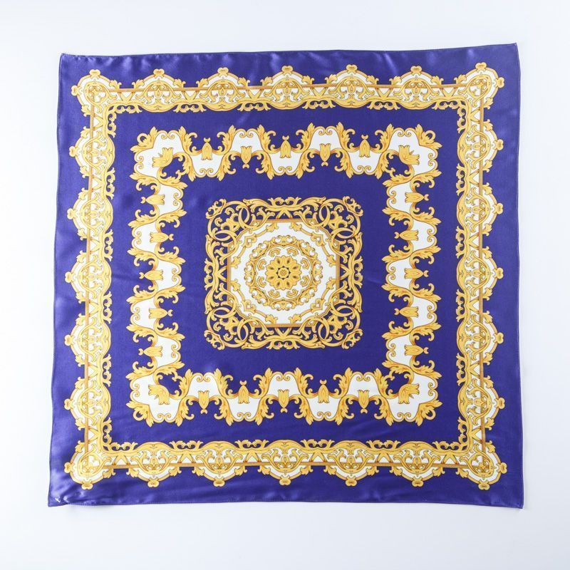 Платок выполнен из натурального итальянского атласного шелка с вензельным орнаментом на фиолетово-синем насыщенном фоне. Невесомый, воздушный, мягкий и пластичный, летящий, поверхность с красивым матовым блеском. Будет отличным стильным аксессуаром к платью, костюму, жакету или пальто.